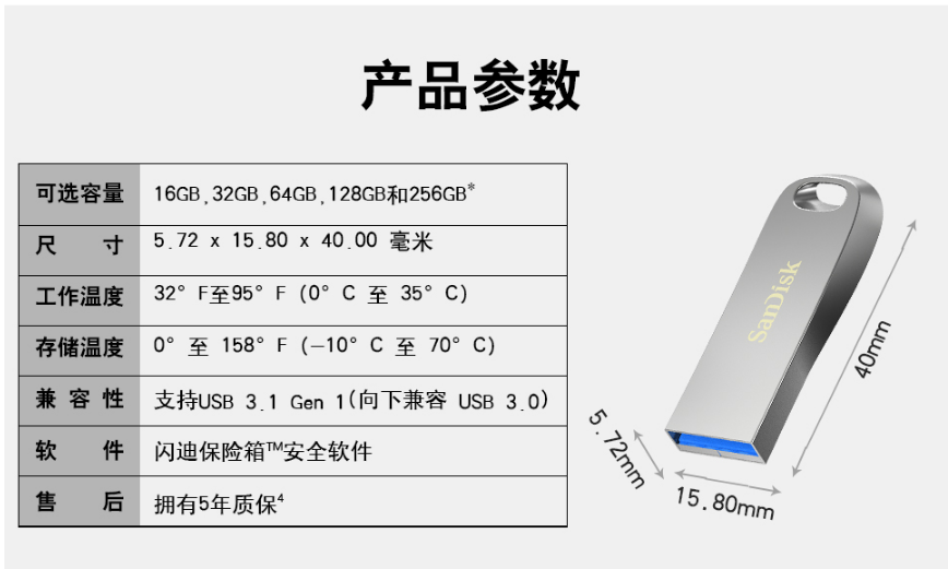 商品名稱:閃迪(SanDisk)USB3.1高速U盤CZ74酷奐銀色金屬外殼USB3.1 閃迪金屬U盤32G