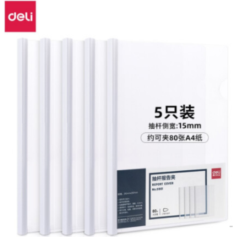 得力(deli)5只A4加寬加厚15mm抽桿夾文件夾 拉桿夾資料簡歷夾 得力拉桿夾白色5901