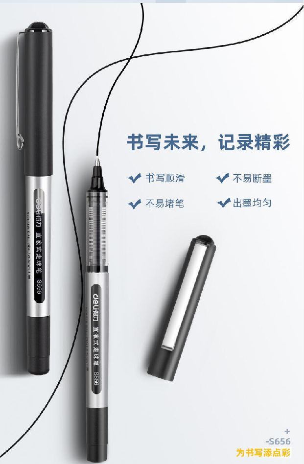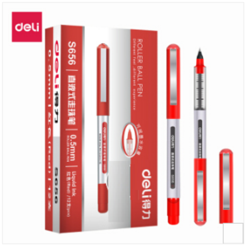 得力(deli)直液式走珠筆考試辦公中性筆簽字筆水筆12支裝 0.5mm 子彈頭紅色12支裝 得力直液式走珠筆S656