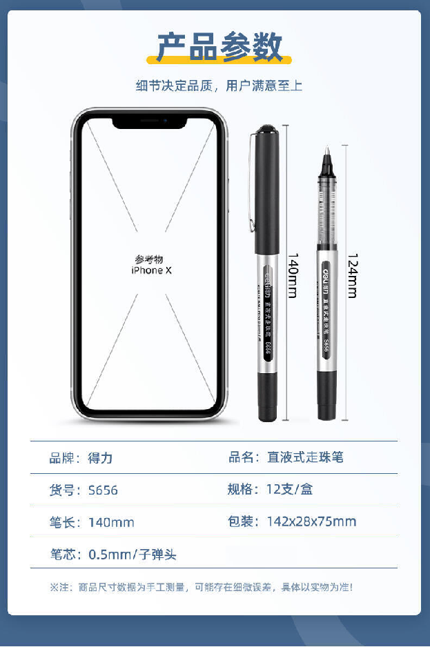 商品名稱:得力(deli)直液式走珠筆考試辦公中性筆簽字筆水筆12支裝 0.5mm 子彈頭紅色12支裝 得力直液式走珠筆S656