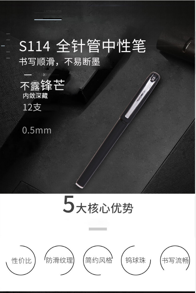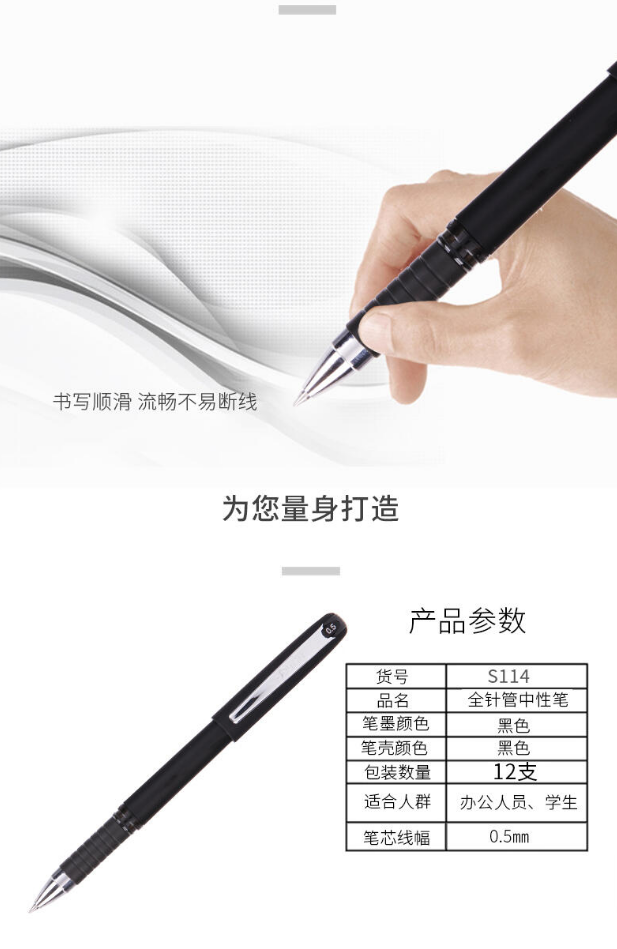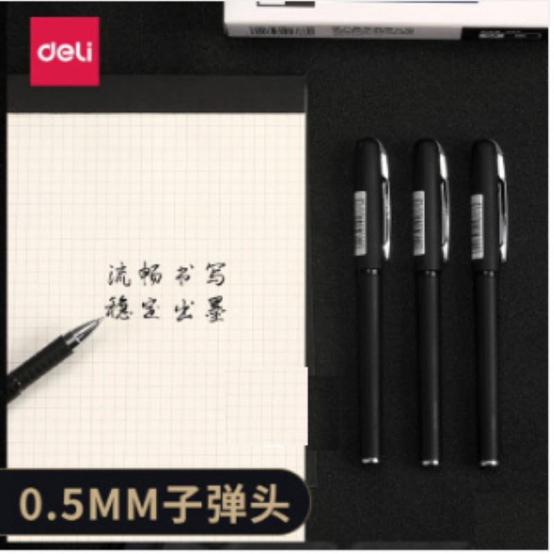 商品名稱:得力(deli)0.5mm子彈頭中性筆 磨砂桿黑色水筆 商務簽字筆 得力碳素筆12支盒裝 S114