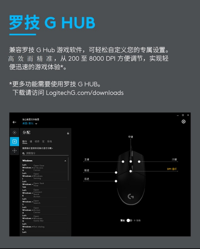 羅技(Logitech)有線鼠標 黑色G102