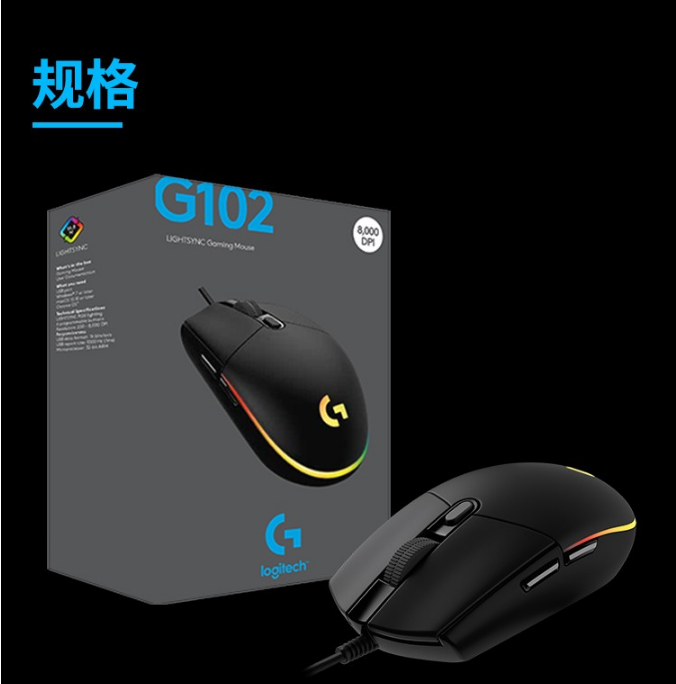 商品名稱:羅技(Logitech)有線鼠標 黑色G102