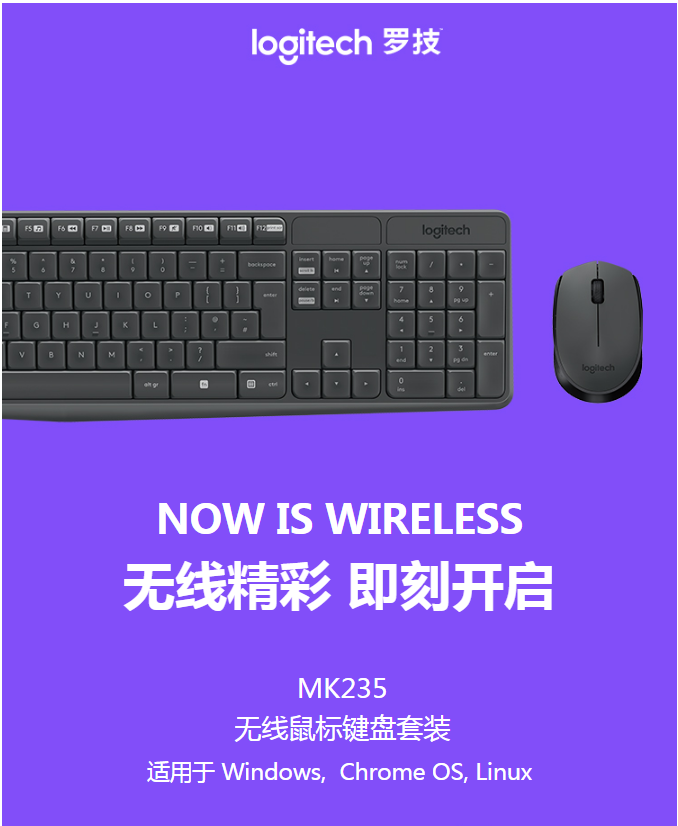 商品名稱:羅技(Logitech)MK235 鍵鼠套裝無線鍵鼠套裝辦公鍵鼠套裝 羅技(Logitech)MK235套裝黑灰色