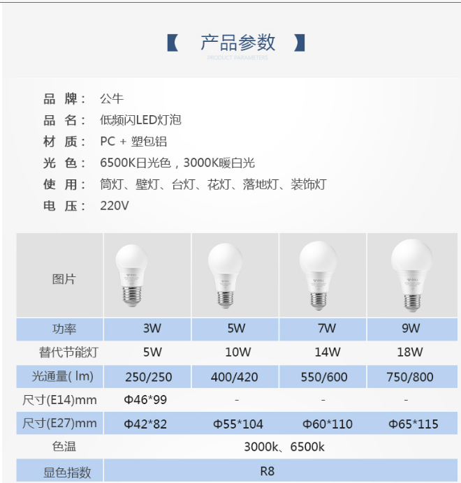 商品名稱:公牛(BULL) LED燈泡 9W球泡白光E27螺口6500K節(jié)能球泡燈螺口球泡燈 防頻閃公牛(BULL)E27