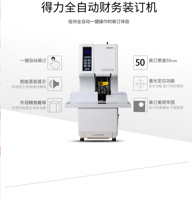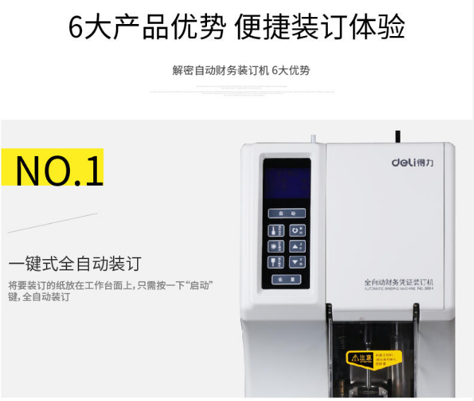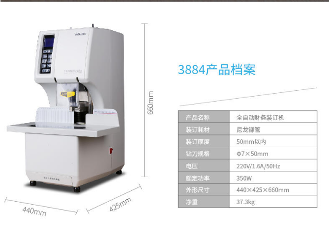 商品名稱:得力(deli)全自動財務憑證裝訂機 檔案打孔機 一鍵操作得力(deli)裝訂機3884