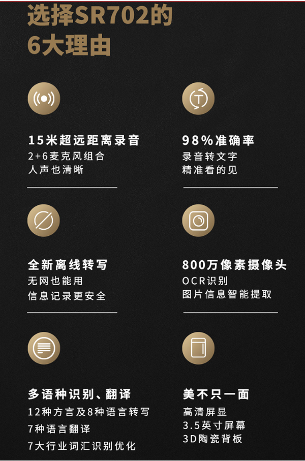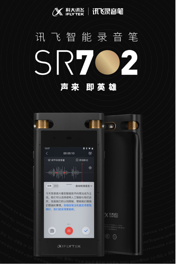 商品名稱:科大訊飛 (iFLYTEK)AI智能錄音筆 中英文邊錄邊譯 離線轉(zhuǎn)寫保存 OCR提取圖片文本 32G儲(chǔ)存科大訊飛SR702