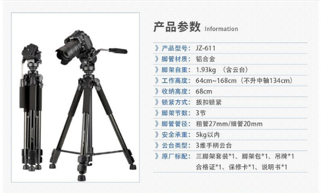 沃爾夫?qū)╓OLFGANG) 三腳架套裝 適用單反相機微單相機等沃爾夫?qū)鵍Z-611 </p>
