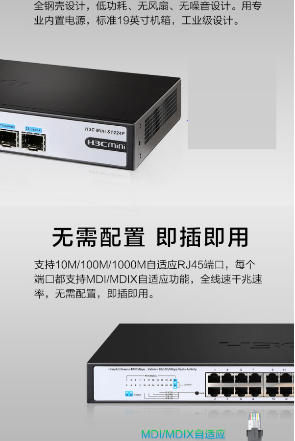 商品名稱:華三(H3C)Mini S1224F 24千兆電口+2千兆光口非網(wǎng)管機架式企業(yè)級網(wǎng)絡交換機 網(wǎng)線分線器 分流器華三千兆交換機MiniS1224F