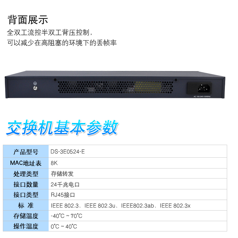 ??低暻д妆O(jiān)控交換機 非網(wǎng)管網(wǎng)絡分線器 24口千兆 DS-3E0524-E
