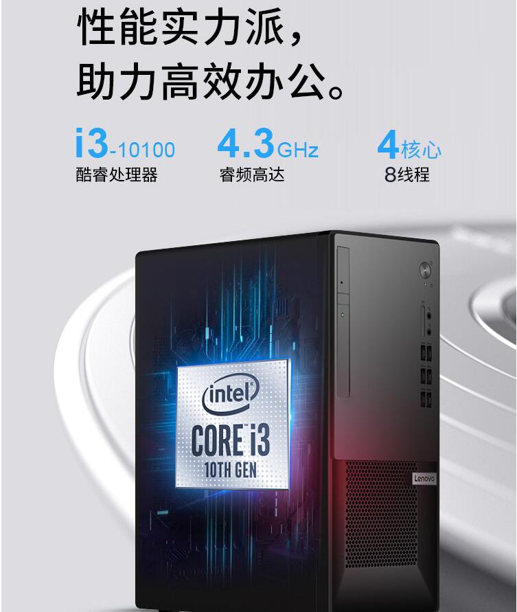 商品名稱:聯(lián)想(lenovo)揚天T4900K臺式計算機 I3-10100 8G 1T 集顯 無光驅(qū) 2019office WIN10/19.5寸顯示器