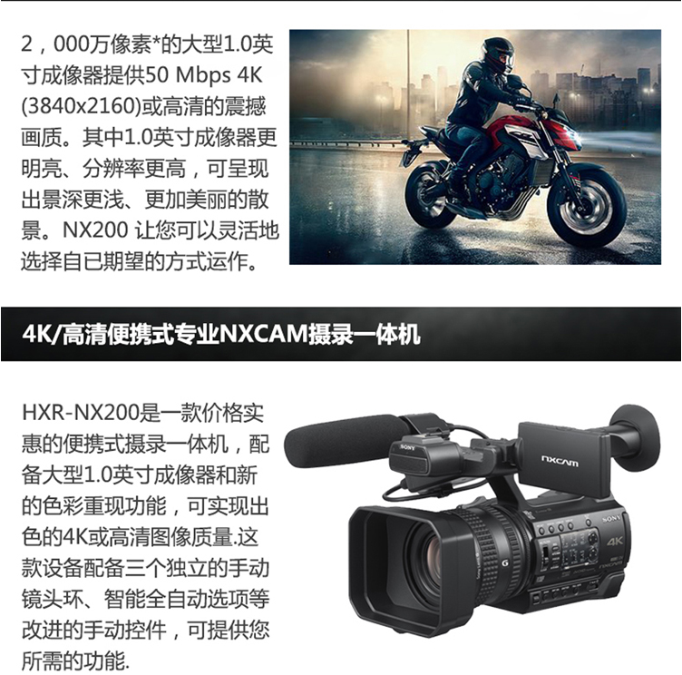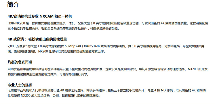 商品名稱:索尼(SONY)HXR-NX200通用攝像機(jī) 4K攝錄一體機(jī)高清會(huì)議高清攝像機(jī)(含包1個(gè) 128G高速卡1個(gè))