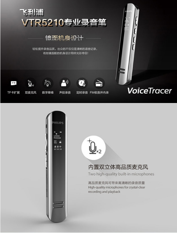 商品名稱:飛利浦(PHILIPS)VTR5210 錄音外圍設(shè)備 錄音筆 16G內(nèi)存可擴(kuò)展 會(huì)議采訪 數(shù)字降噪 雙麥克風(fēng)數(shù)碼鋰電錄音筆