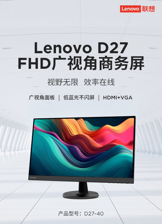 商品名稱:聯(lián)想(lenovo)D27-40 液晶顯示器 微邊框廣視角 低藍光不閃屏 可壁掛高清屏顯示器